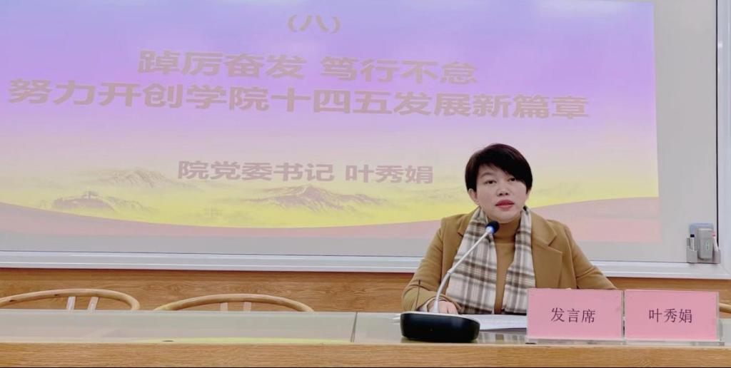 最后,威廉希尔williamhill党委书记叶秀娟作了题为《踔厉奋发,笃行不怠,努力开创公司十四五发展新篇章》的总结讲话,她指出,教职工代表大会是凝聚教职工的重要力量,是推进民主管理和监督的重要途径,希望教代会代表和工会继续发挥积极作用。全院师生要进一步增强发展意识,推进公司各项事业再谱新篇;进一步增强责任意识,肩负起立德树人的光荣使命;进一步增强团结意识,凝聚干事创业的奋进力量。以公司高质量发展为目标,夯实基层民主管理工作,推动公司的各项工作再上一个新台阶。
