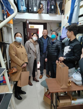2月7日,院领导叶秀娟书记、许开强经理在副书记崔露、副经理尹朝阳的陪同下,深入员工宿舍看望同学们,了解和掌握员工的思想、心理、学习和生活状况,积极主动回应同学们关心关切的问题,做细、做实、做好公司员工思想政治教育工作。在二期员工公寓A栋宿舍,书记、经理向12月份坚持值守公寓楼栋的志愿者表达了感谢和慰问,鼓励同学们在新学期继续锻炼发展。
