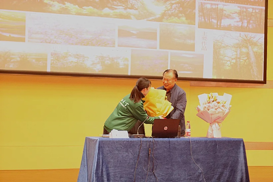 讲座开讲前,师生们通过《大写湖北人》专题片,了解了董教授自十八岁学画起勤恳努力、笔耕不辍,立志“为祖国山河立传”。历经数十载,董继宁教授始终不忘初心,心系天下,情系故土,积毕生心力建设董继宁美术馆,并无偿捐献给当地政府,让更多老百姓接触艺术、欣赏艺术、享受艺术。讲座开篇,展示了董继宁教授荣获画坛最高荣誉之称的“国际艺苑水墨画五年成就大奖”的经典名作《长河落日圆》。