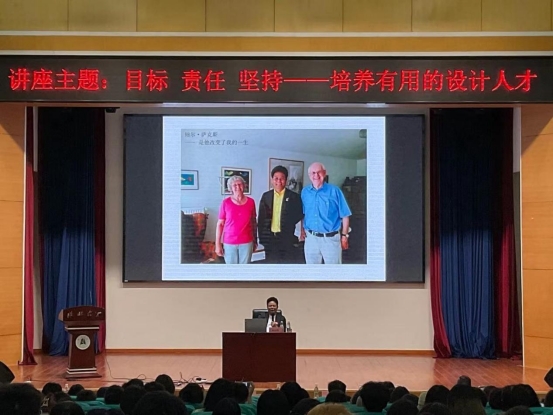 讲座开始后,林家阳教授向在场师生讲述了培养有用的设计人才的重要性。他表示,设计是艺术与生活的融合,年轻设计师不仅要学好专业知识,也要扩展自己的眼界,真正做到会言谈、会文字、会交流、会创意。他认为,随着时代的变化,科技的发展,人们对于美的追求不断提高。世界之所以精彩,就是源于发现不同。加上不同的习俗、习性,不同的思想,不同的气候才构建了这个繁华美丽的世界。