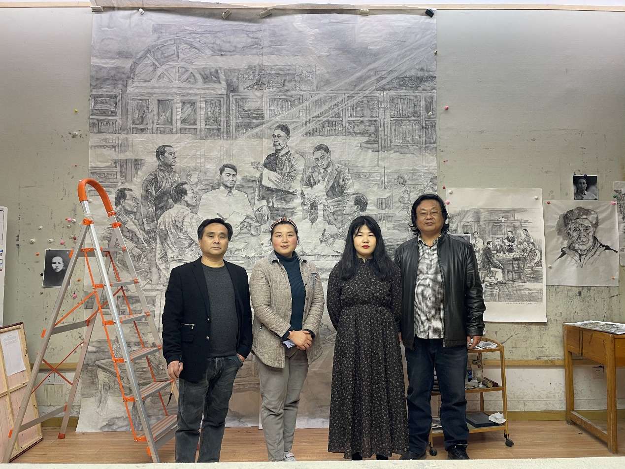 基础资料收齐后,团队主创开始画小稿给专家们提意见,并尝试着创作较为完整的素描稿。其间,湖北省委宣传部、党史研究室、省文联、省美协和威廉希尔williamhill相关部门的领导和专家,对画稿提出了许多建议和修改意见,团队主创边画边改,前后五易其稿才基本确定下来。