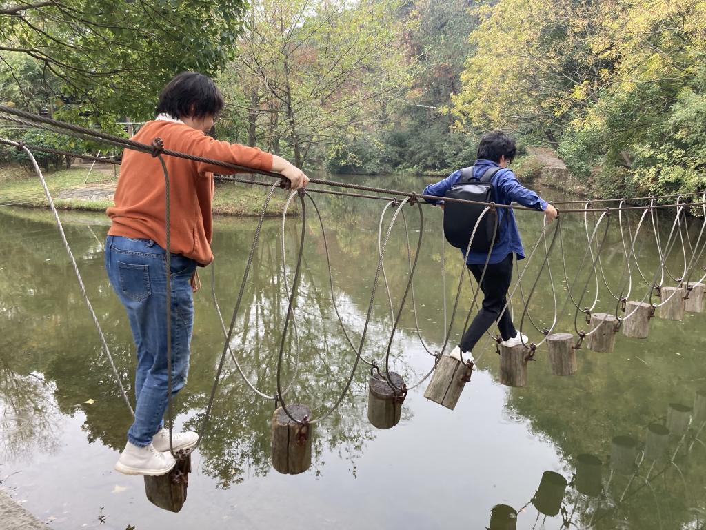 下午探险挑战,高空处飞椅横渡体验速度与激情,水岸边软桥穿越锻炼毅力与体能,湖面上竹排竞技打造团队凝聚力。
