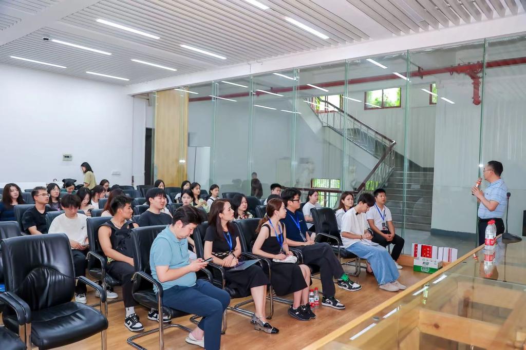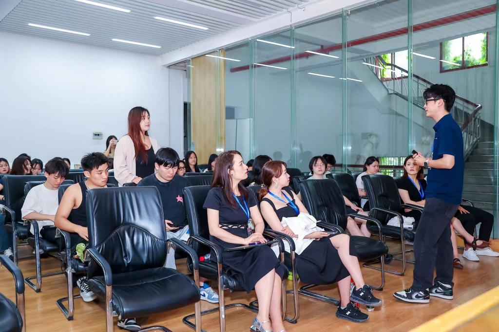 紧接着,主持人对“第十一届金沙短片竞赛周”赛事进行了简短的介绍,并欢迎大家发挥创意积极参与投稿,随后引入了本次招聘会重点环节——“校企面对面”(企业分享+互动交流),先后邀请行者AI、135编辑器、夹心多多等优质企业代表为大家进行就业分享与答疑,在场同学就自身专业困惑向企业负责人们进行互动提问,现场气氛热烈。