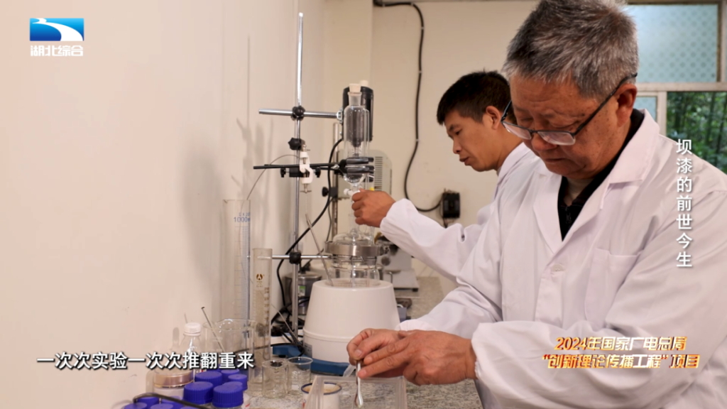 2004年,老洪的一个老客户给他出难题了。原来,当时企业在生产过程中遇到了生漆干燥速度不稳定、附着力不好的问题,知道洪克俭一直在钻研这方面内容,就想邀请他一起参与。就这样,洪克俭一头扎进实验室,开始做起了坝漆研究。一次次实验,一次次推翻重来,2007年,洪克俭的研究终于有了结果,生漆的干燥时间和黏度问题,都实现了突破。洪师傅的研发成果申请了专利,还被湖北省科技厅鉴定为湖北省重大科技成果,他也成了企业的专项技术负责人。2010年,洪克俭从之前的公司离职,一边干着收漆的老本行,一边进行着他漫长的研发工作。