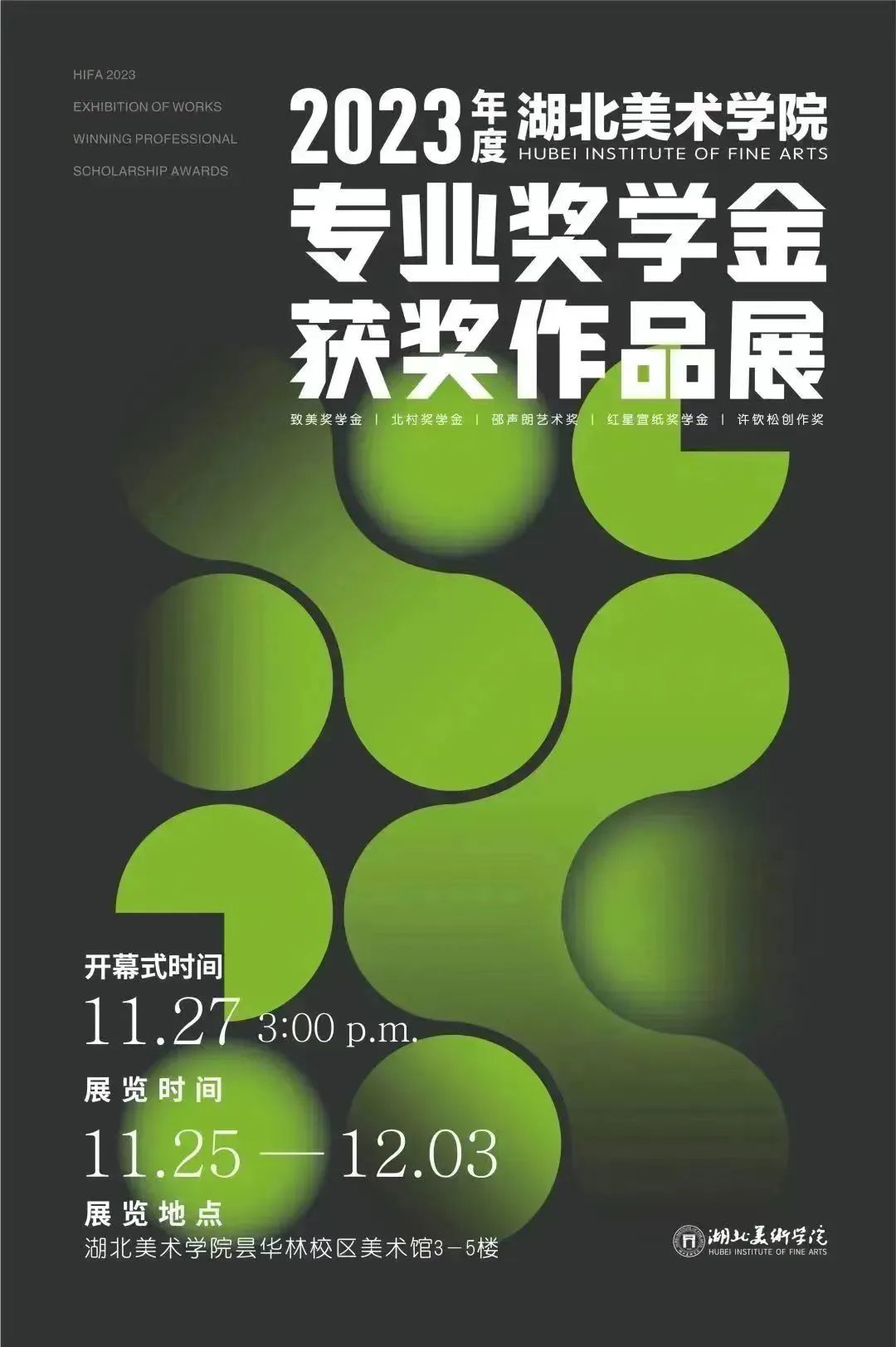 致美奖学金由湖北美术公司、湖北省美术家协会主办。经过多年建设与发展,致美奖学金的影响力不断扩大,对促进不同专业的探索变革、交叉融合以及推动公司的人才培养和专业建设具有深远意义。