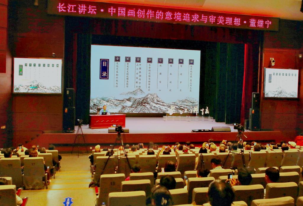 10月7日,公司名誉经理、著名山水画家董继宁教授做客湖北省图书馆长江讲坛,做了题为《中国画创作的意境追求与审美理想》的精彩讲座。我院研究生、本科生80余人与上百名长江讲坛的忠实读者一同参加讲座,在诗情画意的审美追求中领略中国传统文化之美。